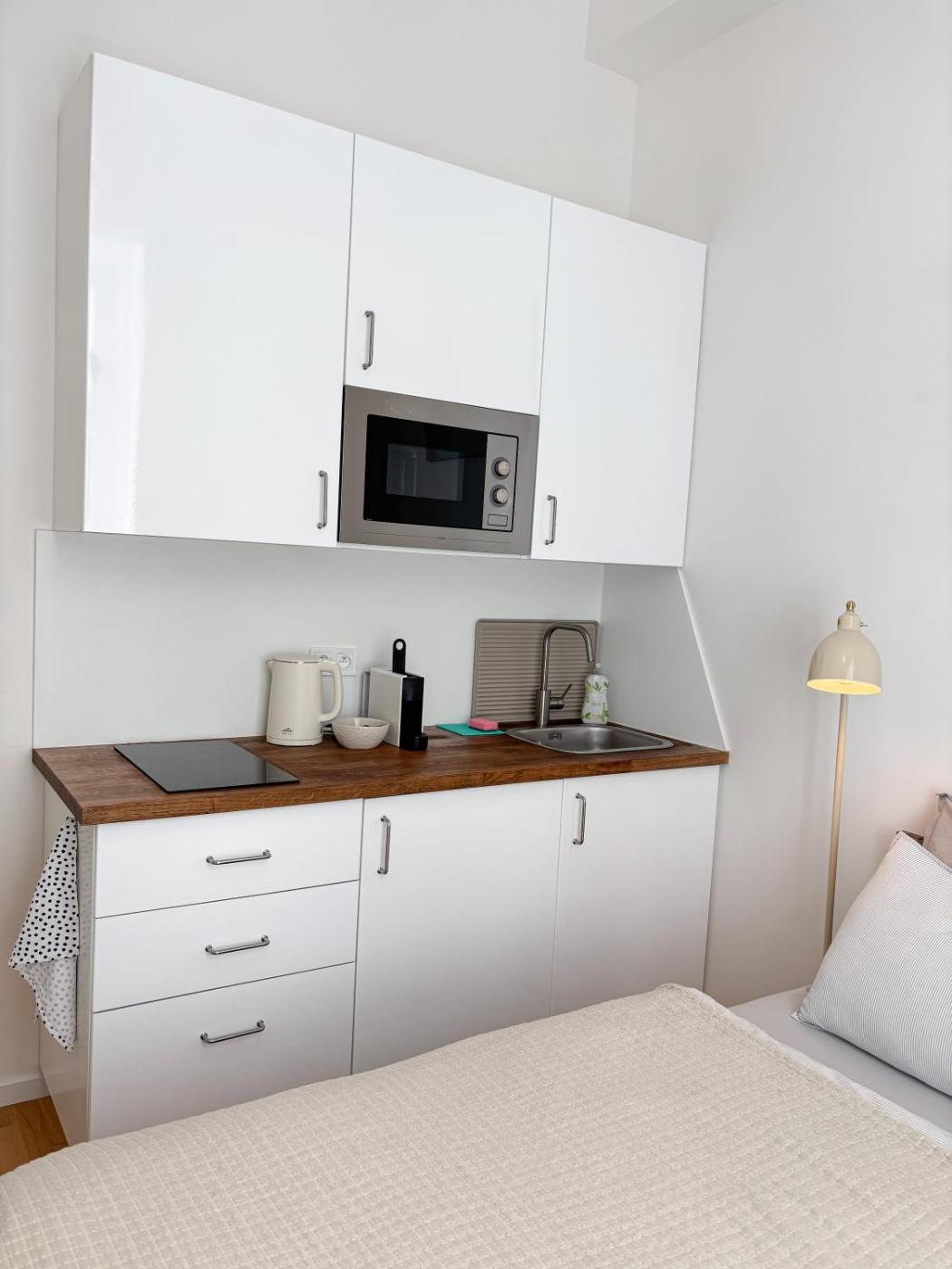 One-Bedroom Apartment. The apartment has 1 bedroom, 1 bathroom with a shower and a kitchenette. In the well-equipped kitchenette, guests will find a stovetop, a refrigerator, kitchenware and a microwave. Among the room amenities are a washing machine, a tea and coffee maker and a wardrobe as well as ancourtyard view. The unit has 1 bed.