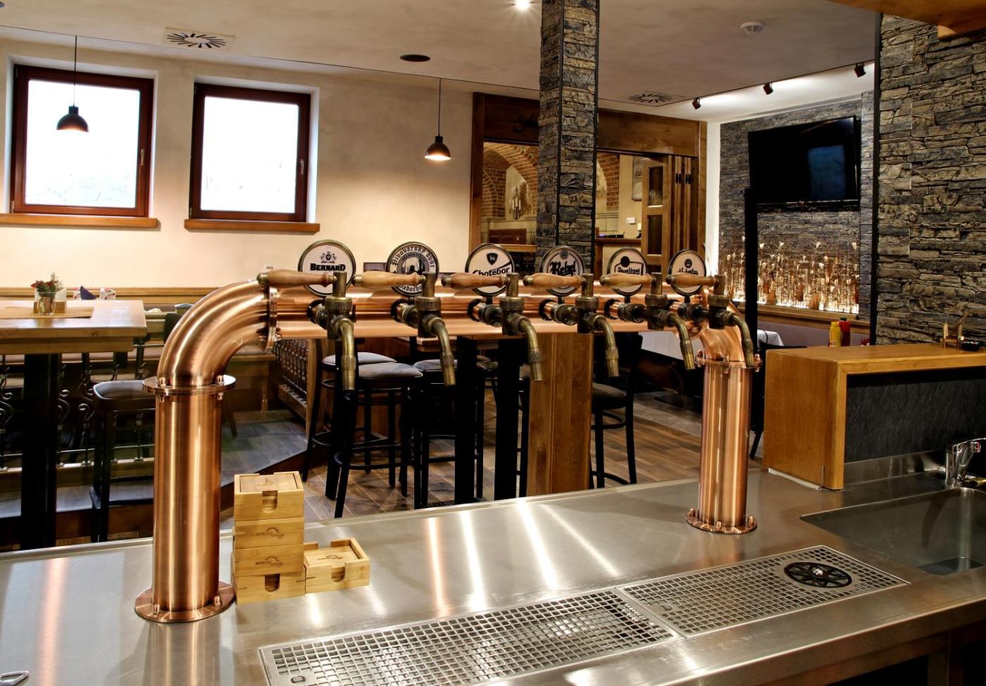 With St. Procopius Basilica reachable in 50 km, Nábřežní terasy features accommodation, a restaurant, free bikes, a terrace and a bar. It is situated 2.2 km from Pilgrimage Church of St.John of Nepomuk on Zelená Hora in Žďár nad Sázavou and offers private check-in and check-out. The guest house has family rooms.
